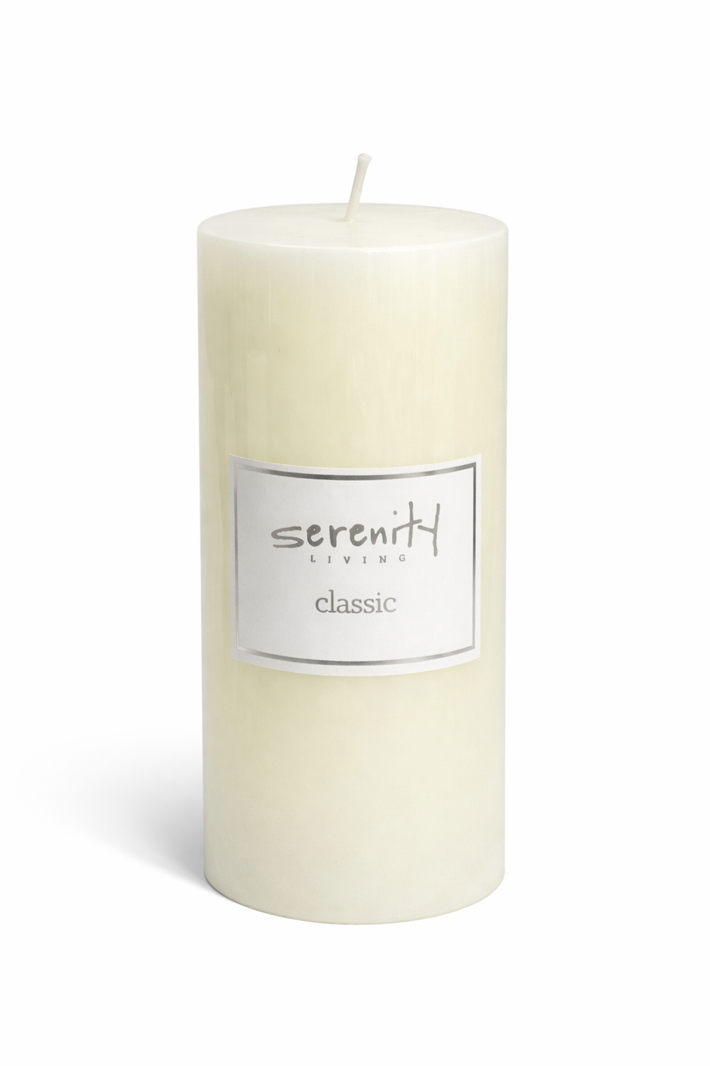 Classic pillar candle with a clean and elegant design, perfect for table settings and home décor, adding a calm and stylish touch to any space.