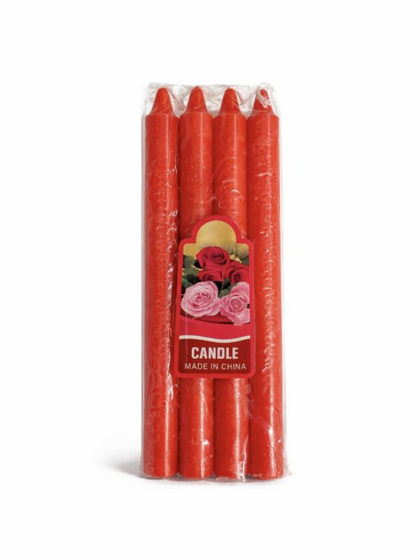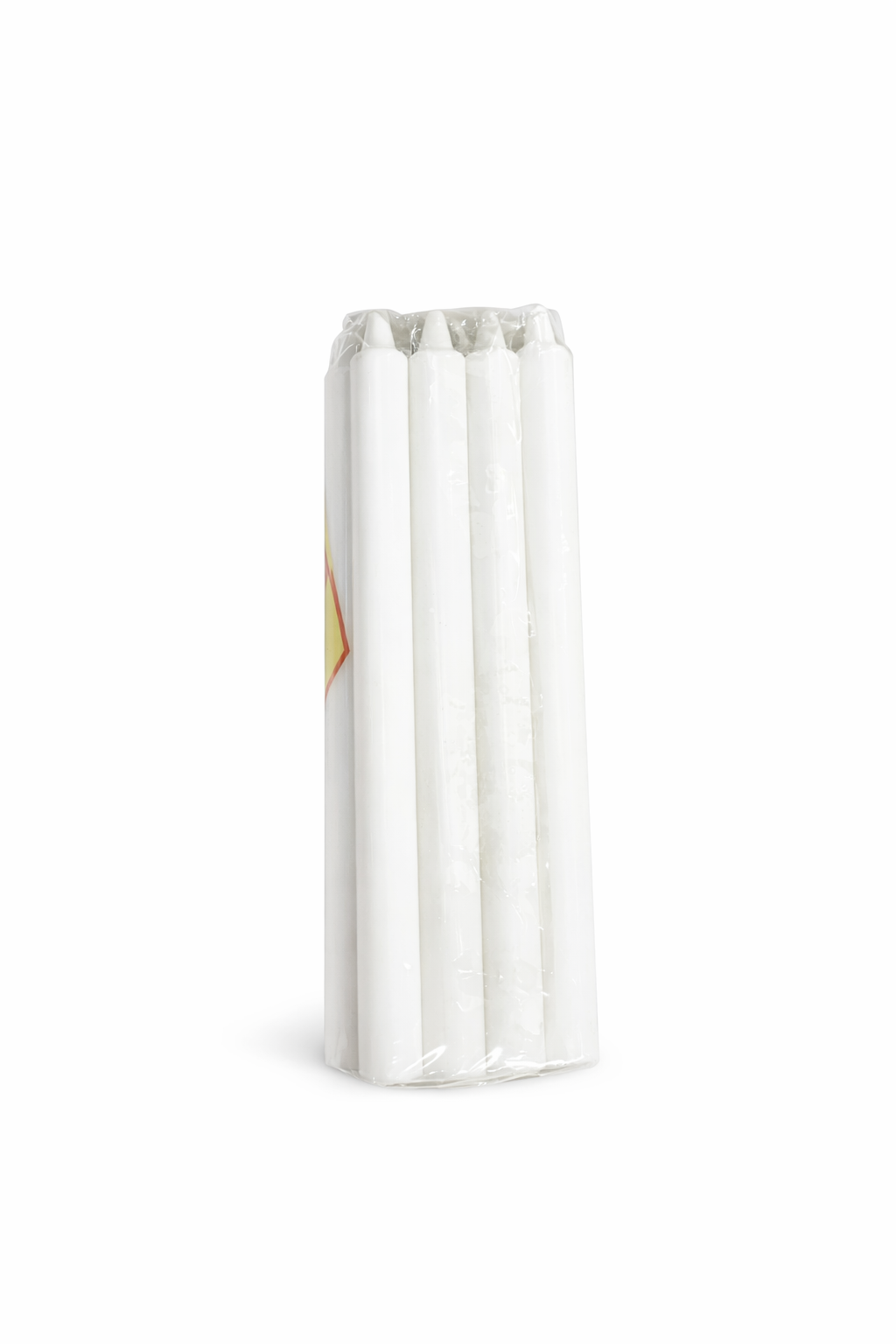 Set of 8 white taper candles, clean smokeless burn, perfect for decor and events.